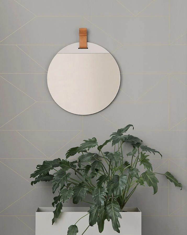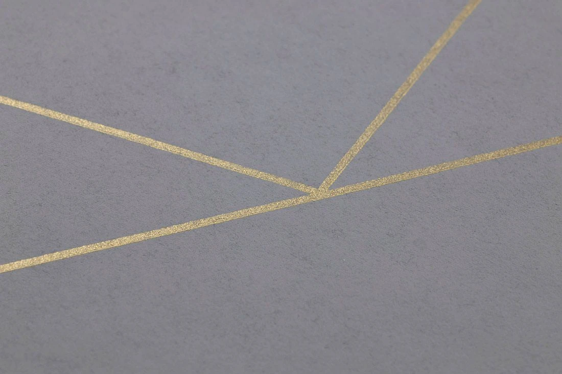 Geometrische Figuren entstehen auf dem hellen Grau des Untergrunds durch teils parallel geführte, teils aufeinander zulaufende und sich schneidende gerade Linien in schimmerndem Gold. Die entstehende Ordnung ist sachlich und fügt Ihrem Alltag gleichzeitig eine Spur von Luxus hinzu. Vornehm im Hintergrund und doch edel, ist der Leimdruck-Entwurf von Ferm Living das perfekte Understatement für Ihre vier Wände.