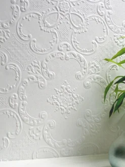 Ein klassisches Prägemuster aus historischen Ornamenten bringt Eleganz kombiniert mit britischem Understatement an die Wand Ihres Lieblingszimmers. Die fühlbar hervortretenden Elemente des Musters bieten im Spiel von Licht und Schatten ein reizvolles Bild. Was die Farbe angeht, haben Sie die Wahl: Belassen Sie die Tapete in klassischem Weiß oder geben Sie ihr mit einer tollen Wandfarbe ein neues, charaktervolles Gesicht!