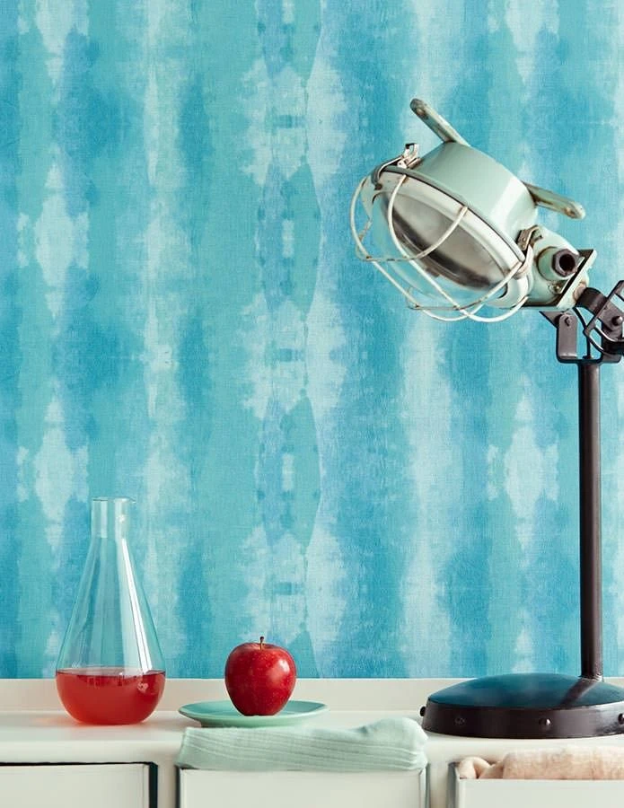 Lust auf paradiesische Erholung im Indischen Ozean? Retro Tapete Alika in herrlichen Meeresfarben wie Türkis, Ozeanblau und Wasserblau zaubert karibische Ferienstimmung in jeden Raum. Die große indische Kunst der Batik verleiht der scheuerbeständigen Vliestapete mit Vinyloberfläche ihren spirituellen Retrocharakter, der an Freiheit, Love & Peace der wilden 70er Jahre erinnert. Auch haptisch hält diese wunderbare Design Tapete eine Überraschung parat: Die Oberfläche zeigt ein feines textilähnliches Muster, das zum Anfassen einlädt.