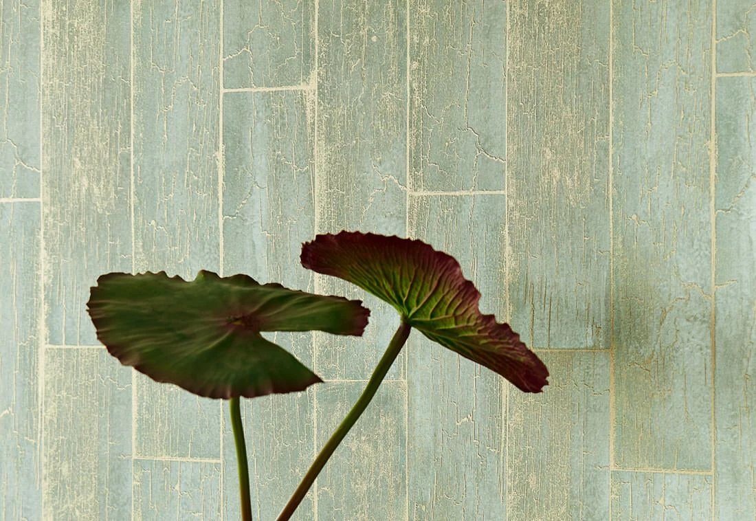 Altes Holz mit Charakter und Strukturen, wie sie die Natur nicht schöner zeichnen kann – Das ist Design Tapete Atoras im Holzlook. Schmücken Sie den Raum mit diesen angesagten verwitterten Holzplanken in Pastellgrün mit feinen Goldschimmer-Details. Shabby Chic, Country Look, Natur-Räume erhalten wohlige Struktur und geheimnisvollen Glanz.