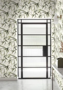 Man meint beim Anblick dieser Papiertapete fast, das leise Rascheln der schlanken Bambusblätter im warmen Wind zu hören. Wie mit kostbarer Tusche auf die Tapete aufgetragen und mit einer feinen Struktur im Farbauftrag, wirken die Blätter wie ein kostbares Gemälde. Die exotische Ausstrahlung der botanischen Tapete passt hervorragend zu Ihrer orientalisch geprägten oder asiatisch-schlichten Einrichtung.