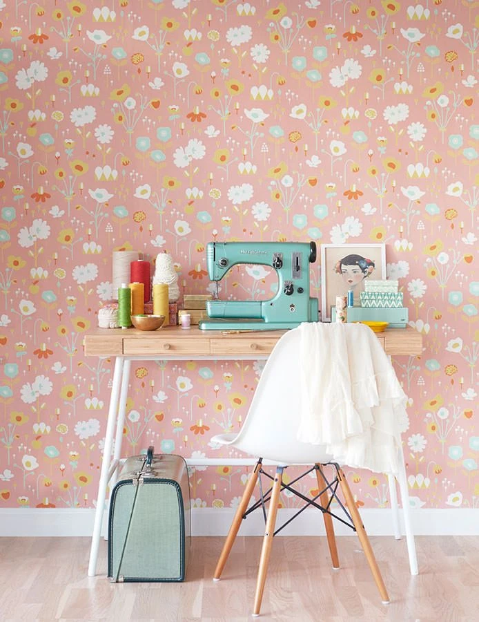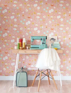 Pflück mir einen bunten Blumenstrauß – Tapete Bloom von Majvillan mit stilisierten Fantasieblumen lädt zu diesem Vergnügen gerne ein. Kontrastreich heben sich die Musterelemente in Cremeweiss, Hellgrün, Orange, Zitronengelb von der spannenden Grundfarbe Beigerot ab. Räume mit dem Plus an exzentrischer Romantik kommen mit dieser Designtapete voll und ganz auf ihre Kosten.