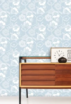 Unbeschwertheit, die ein Tag am See verspricht und eine frische Prise Nostalgie schwingen in der floralen Mustertapete mit, die zu blauen Stunden einlädt. Eine Tasse feiner Tee, ein Stück Kuchen, das gute Buch oder die LP mit den Lieblingssongs, alleine oder mit lieben Menschen. Catia in Blauweiss und Hellblau eröffnet durch ihren sinnlichen Charme alle Zeit der Welt.