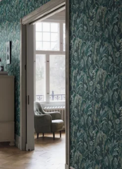 Die silbrigen Blätter und die kugelförmigen Blüten der Distel fängt die Tapete Charleston wunderschön ein. Die Blau- und Gelbtöne der Blätter und Blüten in fein aufeinander abgestimmten Farbnuancen erzeugen mit dem dunkelblauen Grund eine ruhige, fast magische Stimmung, in der Sie von der Hektik des Alltags abschalten können. Abgesetzt mit hellen Möbeln, bildet die Zusammenstellung der Blautöne einen traumhaften Kontrast für ein Wohn- oder Schlafzimmer.