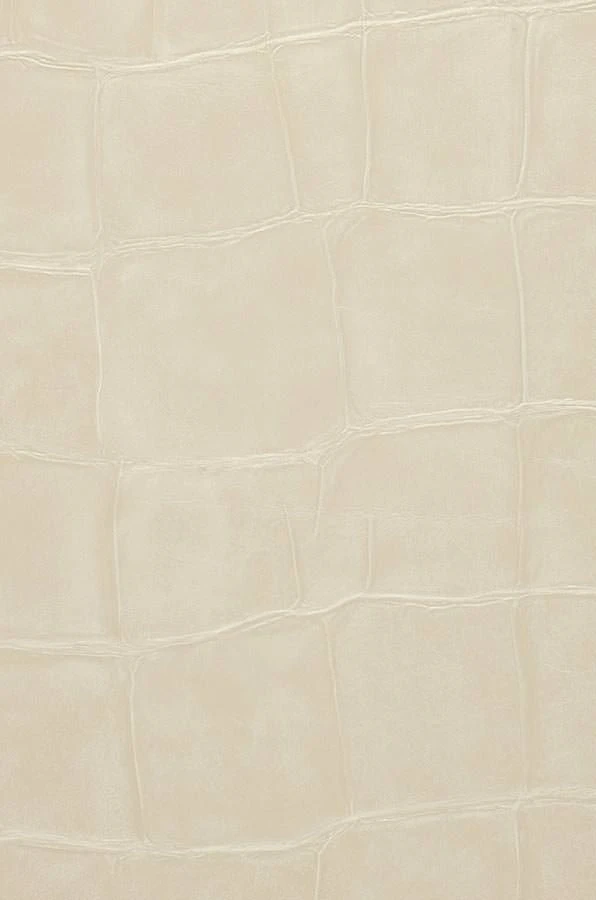 Die große, schuppenartige Narbenstruktur in einem eleganten hellen Elfenbeinton sorgt für die Anmutung echten Krokodilleders. Die Narben sind als fühlbares Relief in die Oberfläche aus Vinyl eingearbeitet, die gleichzeitig hoch waschbeständig ist und dadurch auch für ein schickes Badezimmer verwendet werden kann. Die Leder-Imitation bietet einen geschmackvollen Hintergrund beispielsweise für dunkle Holzmöbel.
