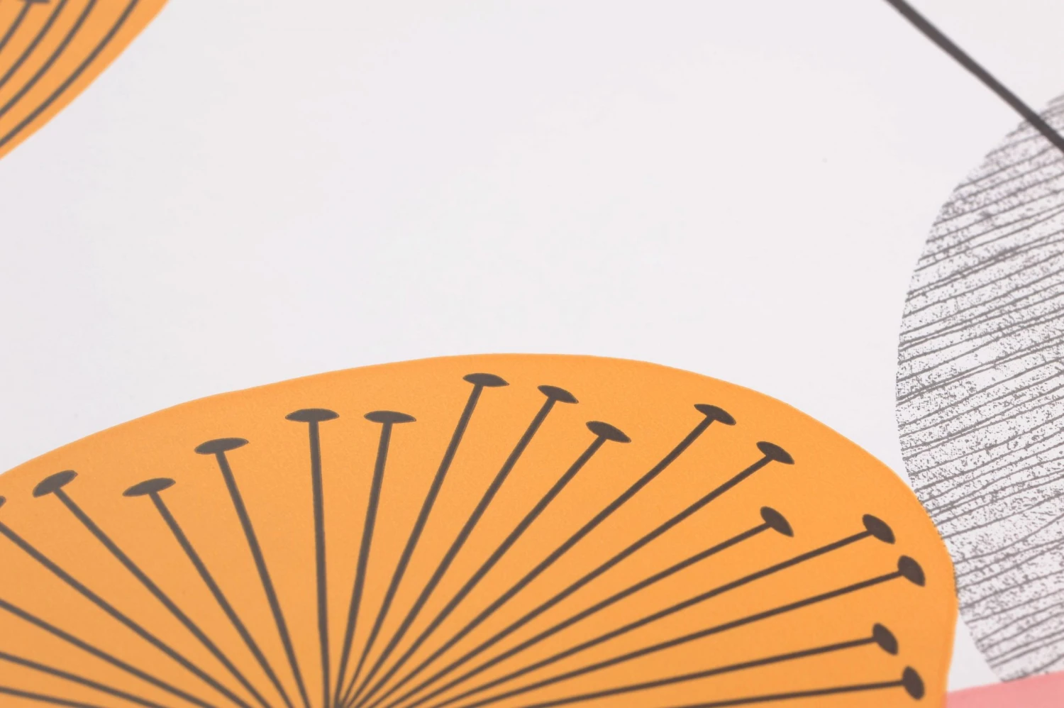 In sattem Maisgelb, hellem Rot und Rosa leuchten die stilisierten Pusteblumen auf dem weißen Grund. Ihre duftigen Kugeln an den feinen Stängeln werfen zarte Schatten. Die Vintage-Tapete verbreitet gute Laune im Stil der 70er Jahre und ist mit ihren fröhlichen Farben ein echter Hingucker. Möbel mit der ausgeprägten Formensprache dieser Zeit passen prächtig zu der ausdrucksstarken Wanddekoration.