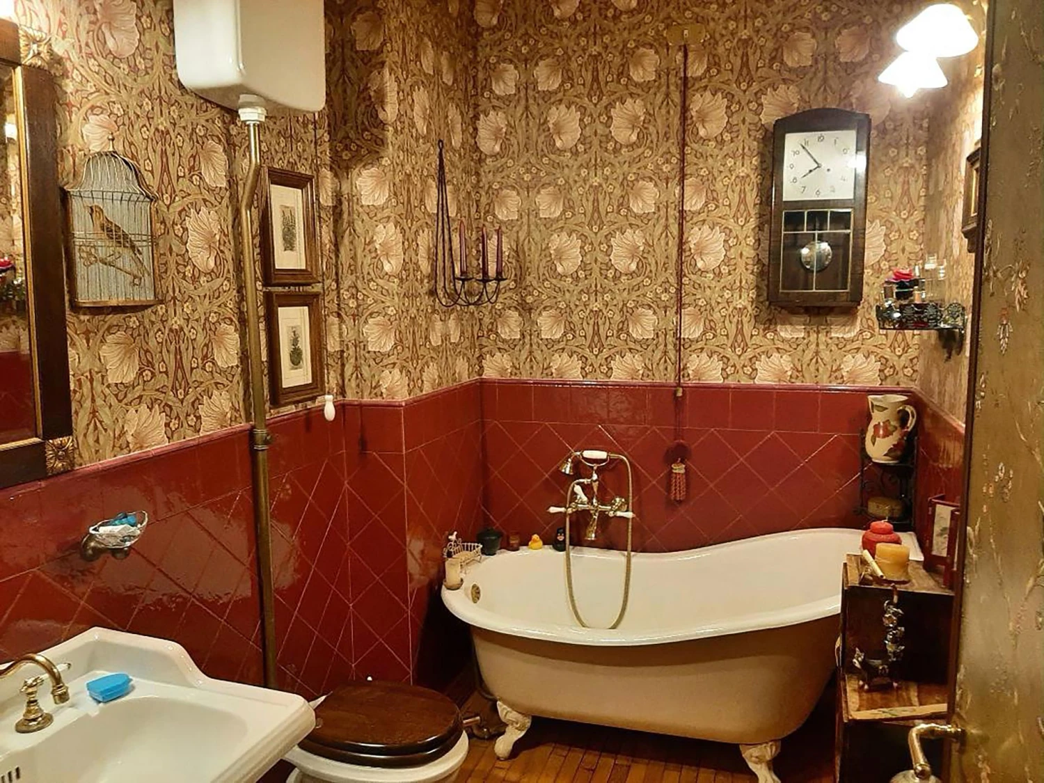 Die im klassischen Leimdruckverfahren hergestellte Papiertapete „Despina“ ist eine Berühmtheit: Sie geht auf ein Design des britischen Künstlers und Designers William Morris zurück. Der purpurrote Untergrund bringt die hellen Blüten, deren Zartheit man fast zu spüren meint, besonders schön zur Geltung. Um die verschieden großen Blüten schlingen und winden sich Blätter in verschiedenen Grüntönen.