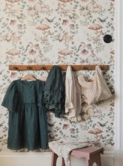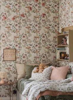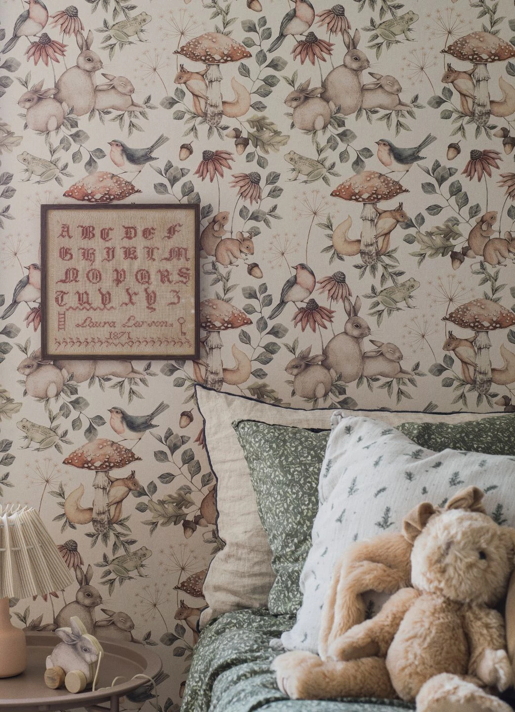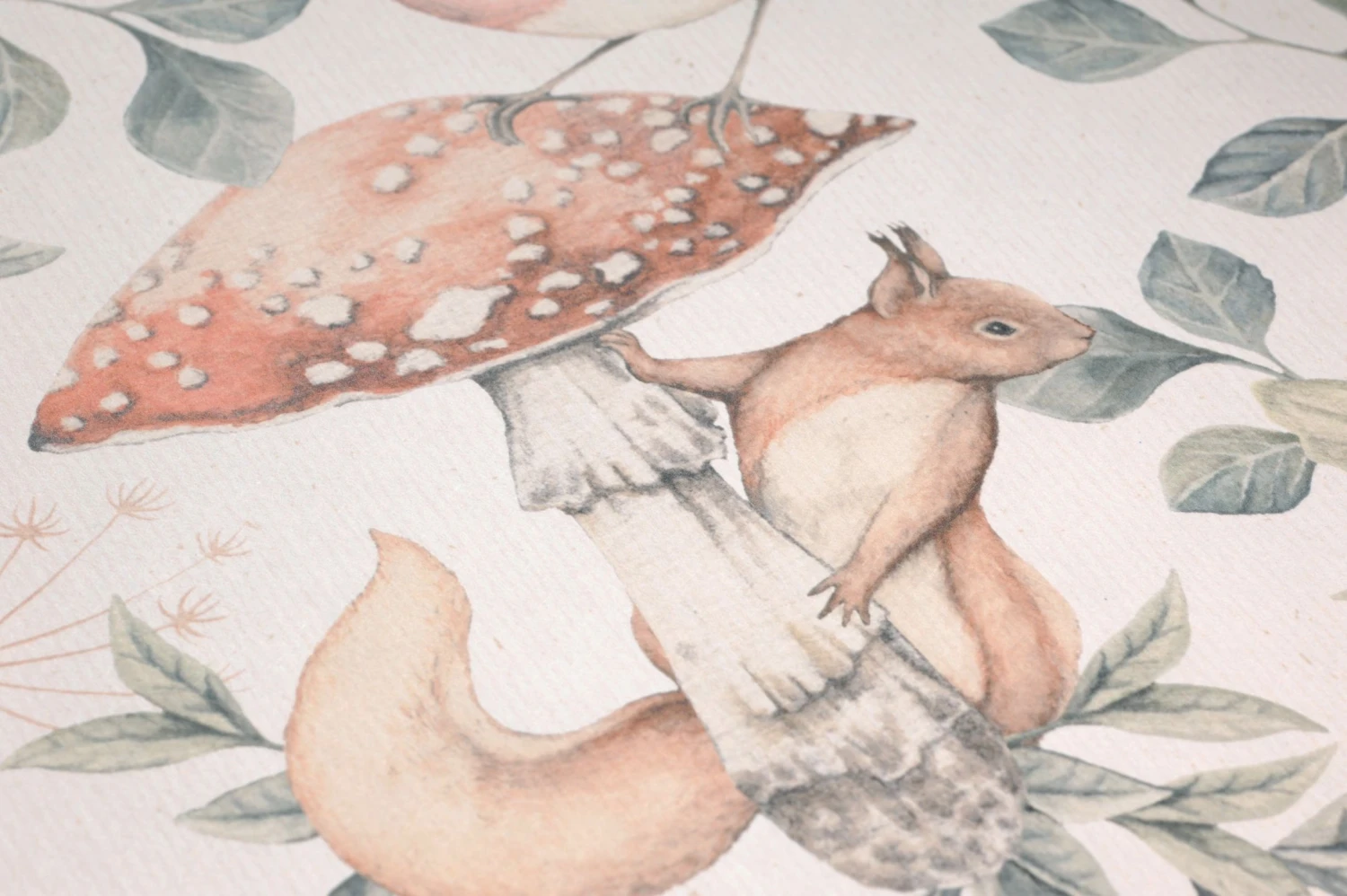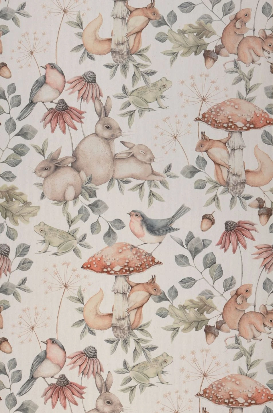 Ein kleines Idyll breitet sich mit Vliestapete Elsa auf Ihren Wänden aus und macht jedes Kinderzimmer zu einer Oase der heilen Welt. Zwischen Zweigen, Blumen und Pilzen sind liebevoll und niedlich gezeichnete Tiere zu entdecken, darunter Kaninchen, Eichhörnchen und Rotkehlchen. Die Tapete regt die Vorstellungskraft Ihres Kindes an und lässt die Erinnerung an den letzten Besuch im Wald lebendig bleiben.