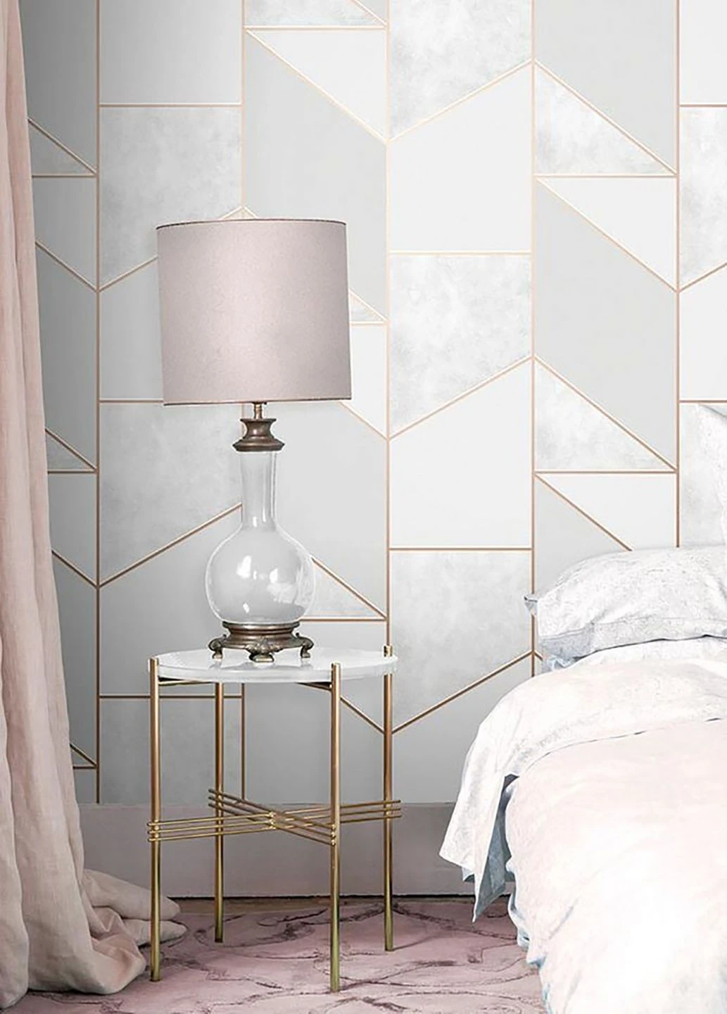 Exklusiver Marmor ist Teil des geometrischen Musterdesigns, das an den Art Deco angelehnt ist. Rosenholz, das die Umrisse der Dreiecke und Trapeze glanzvoll nachzieht, veredelt die Wirkung der Grautöne. An Eleganz ist Emela nicht zu übertreffen, sie spiegelt modernes Trendsetting mit dem Charme der Goldenen Zwanziger wieder.