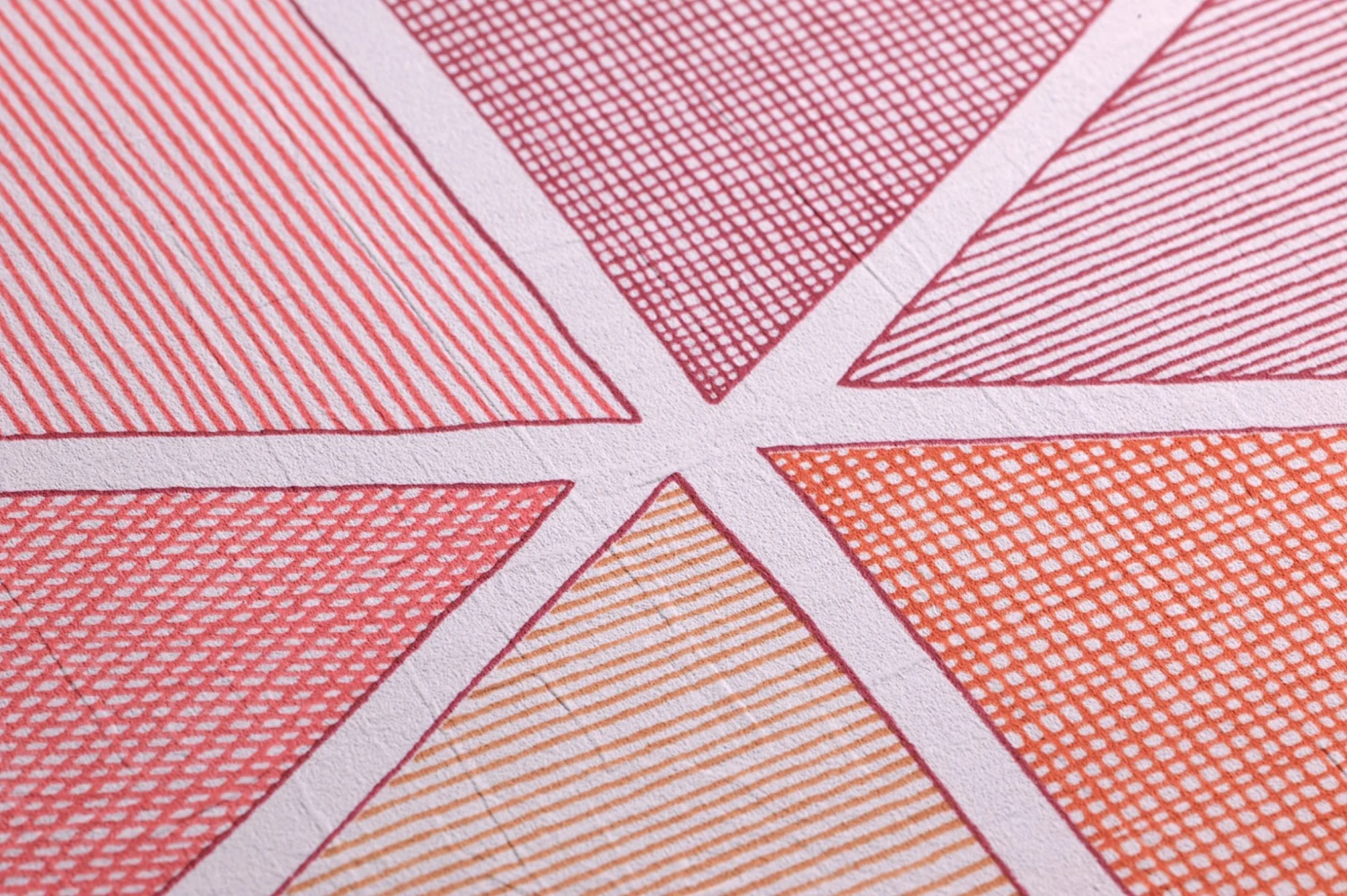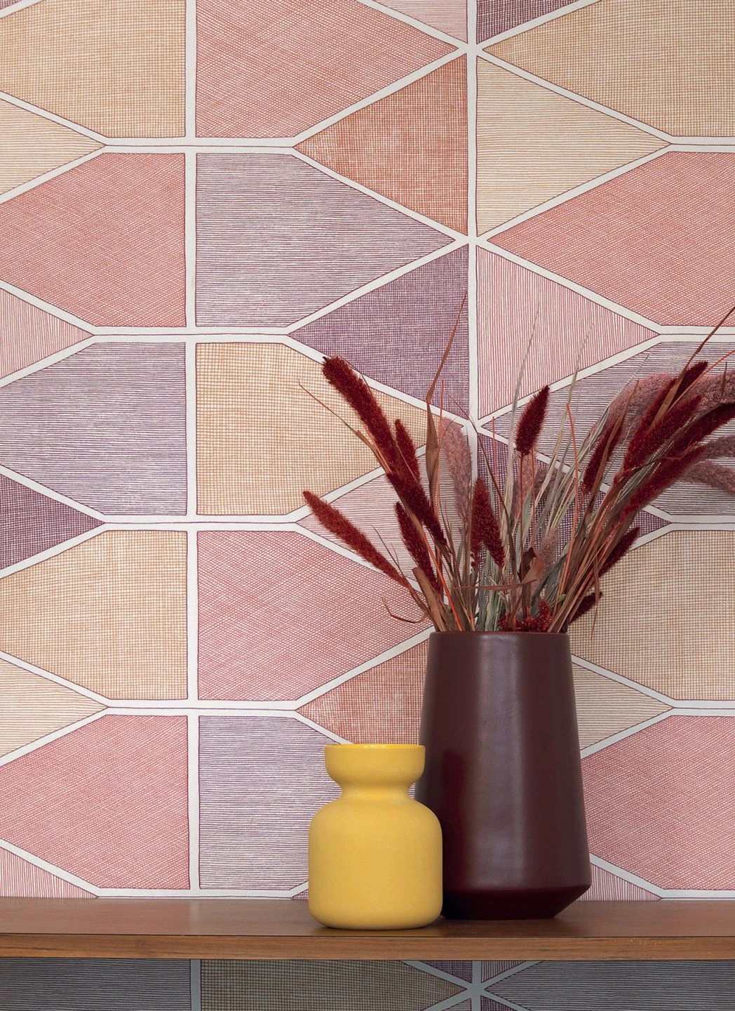 Rot, Orange, Bordeaux – Diese warmen Farben werden durch die feine haptische Linienstruktur auf weißem Grund zu herrlich bunter Grafikkunst, die an einen unbeschwerten Sommertag erinnert. Das Muster im Stil der flotten Fifties verwandelt jeden Raum in eine Urlaubsoase. Die strapazierfähige, intensiv zu reinigende Oberfläche erlaubt den Einsatz auch in Küche und Badezimmer.