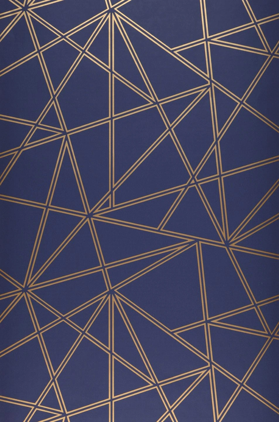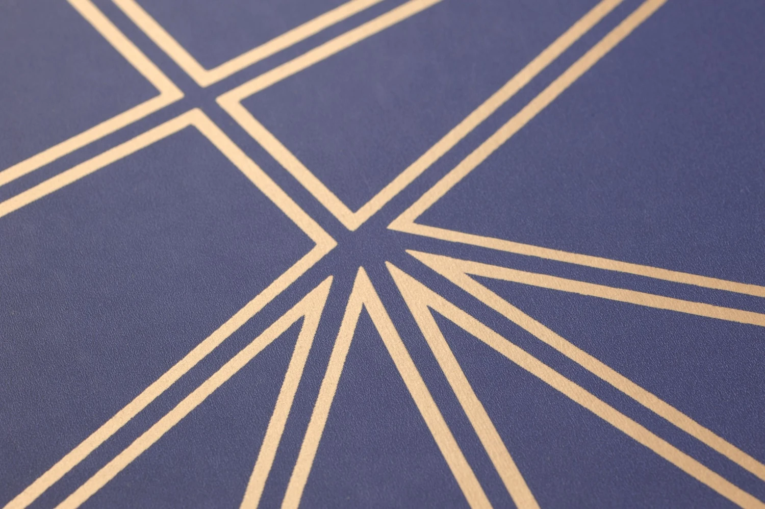 Von vornehmer Zurückhaltung hält Design Tapete Habakuk in doppelter Hinsicht nichts. Im Gegenteil. Das energiegeladene Geometriemuster im Zusammenspiel mit dunklem Graublau und schimmerndem Gold setzt auf direkte Präsenz. Das moderne Tapetenkunstwerk nimmt die Wand bevorzugt für sich alleine in Anspruch und profitiert von niedrigen Möbeln.