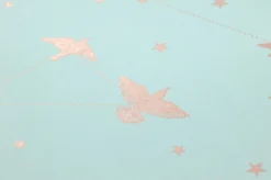 Die reizende Romantik Tapete setzt auf abstrakte und konkrete Bilder und spricht dabei Bände. Himmelszelt, Sternenbilder und Vogelfreiheit symbolisiert die Designtapete in Pastellgrün und Rosenholz. Sternschnuppen zeigen sich, wenn das schimmernde Muster vom Sonnenlicht geküsst wird.