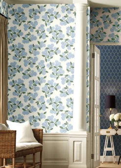 Mit dieser Vliestapete in hellen, zarten Farben laden Sie Licht und Luft in Ihre Räume ein. Die unvergleichlichen Blüten der Hortensie haben für das Design Pate gestanden. Ihr helles Blau mit weißen Highlights und die verschiedene Grüntöne der Blätter lassen die Blumen fast plastisch wirken und sorgen in Verbindung mit dem weißen Hintergrund für sommerliche Frische.