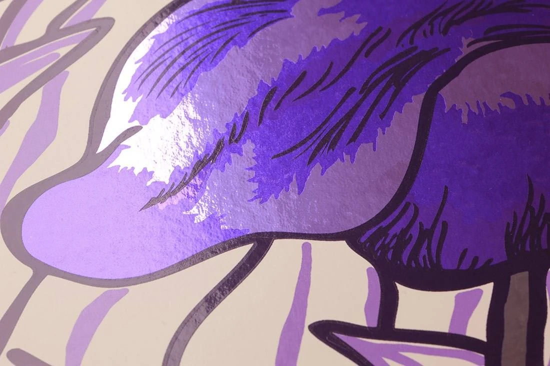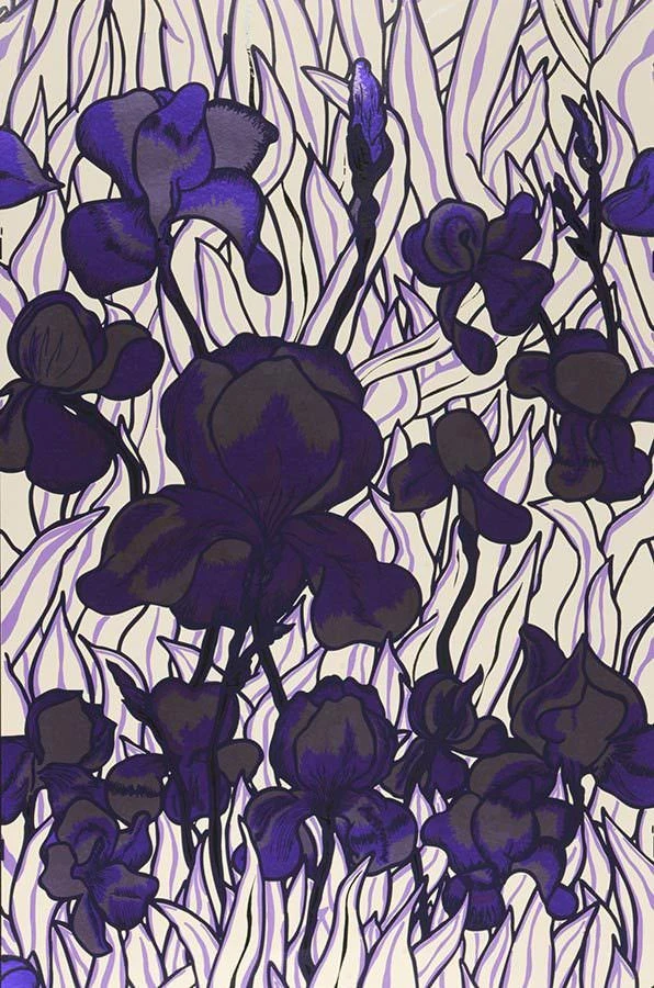 Tiefviolette Blüten haben die Schwertlilien, die üppig wirken wie jene, die van Gogh seinerzeit auf die Leinwand bannte. Die nur durch Umrisse angedeuteten Blätter lenken die Aufmerksamkeit ganz auf die prachtvollen Blumen. Dabei sorgt die Farbwahl von verschiedenen Violett-Tönen auf cremeweißem Grund für eine tiefe Harmonie. Durch den Chromeffekt der verwendeten Farben schimmert die edle, handgedruckte Vliestapete von Flavor Paper im Licht. Sie ist ab 3 Rollen Mindestabnahmemenge erhältlich.