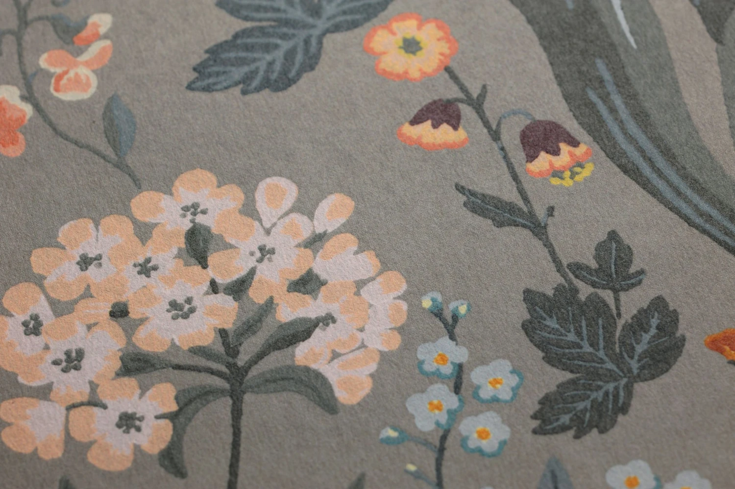 Sehr geschmackvoll kombiniert die über und über mit Blumen bedeckte Vliestapete Isabelle die gedeckten Grüntöne der Blätter und den steingrauen Untergrund mit ausgewählten Farbtönen: Hellgelb, Orangebraun, Ozeanblau und Rosa leuchten die Blüten und bilden einen harmonischen Gesamteindruck. Gerade für Ihre Einrichtung im skandinavischen oder im Landhaus-Stil steuert die Tapete den perfekten Hintergrund bei. Möbel in einer der verwendeten Farben machen das Design komplett.