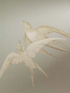Eine Schwalbe macht noch keinen Sommer – die Schwärme von Schwalben auf dieser Papiertapete bringt aber mit Sicherheit sommerliche Atmosphäre in Ihr Zuhause! Der neutrale hellblaugraue Untergrund ist eine schöne Kulisse für die in zartem Grauweiß und Hellgraubeige wie hingetuscht wirkenden Vögel. Ergänzen Sie Ihre Einrichtung im Landhaus-Stil oder im asiatischen Stil mit der Leichtigkeit der über den Sommerhimmel schnellenden Schwalben!