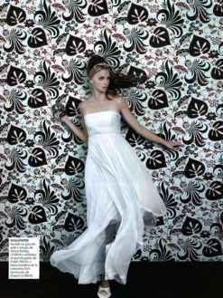 Die klassische, zeitlose Farbkombination aus Rot und Schwarz auf weißem Grund spielt hier ihren ganzen Reiz aus. Kunstvoll stilisierte Blüten und geschwungene Blätter und Ranken überziehen die ganze Fläche der Tapetenbahn mit ihren abwechslungsreichen Formen. Das kräftige Rubinrot und das Schwarz lassen sich bestens kombinieren. Für einen Eindruck von räumlicher Tiefe sorgen helle rosafarbene Ranken und Zweige, die wie die Effekte von Licht und Schatten wirken.