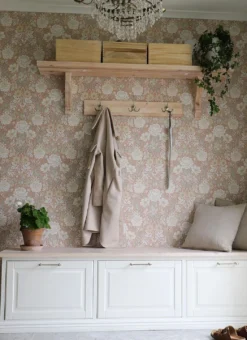 Eine Portion Nostalgie ist mit im Spiel bei der im Leimdruckverfahren hergestellten floralen Tapete Kerala. Denn die vielfältigen stilisierten Blumen und Blattranken, aber auch die Farbgebung erinnern an Designs aus der Epoche der Symbolisten und des Jugendstils. Der kupferbraune Untergrund gibt den zarten Hellgrau-, Hellgraubeige- und Weißtönen der kunstvoll arrangierten Blumenranken einen kräftigen Halt und einen farblich abgestimmten Rahmen.