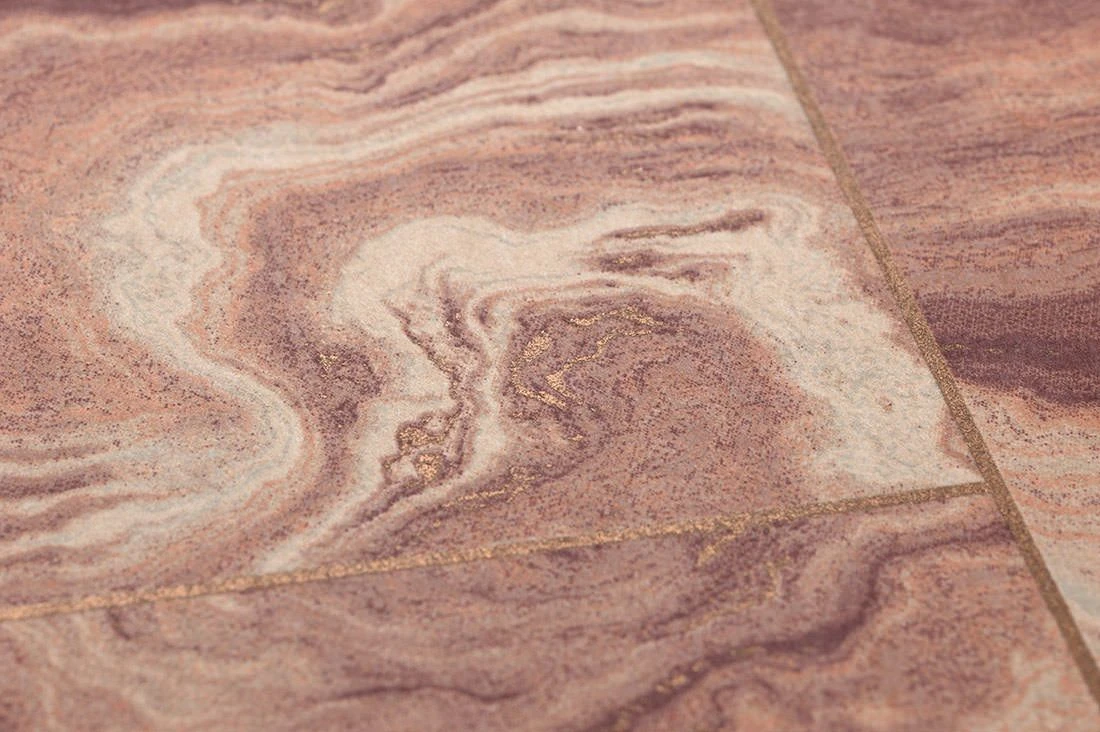 Marmorstrukturen in Brauntönen und Bronzeschimmer erinnern als modernes Mosaik an Holz und Bäume mit Jahresringen. Wie ein leuchtendes Flammenspiel im Kamin erfüllt auch die extravagante Marmorimitat Tapete den Raum mit wohliger Behaglichkeit und knisternder Spannung. Sehr wirkungsvoll zu gehobenen Vintage-Styles oder für den extrovertierten Kolonialstil.