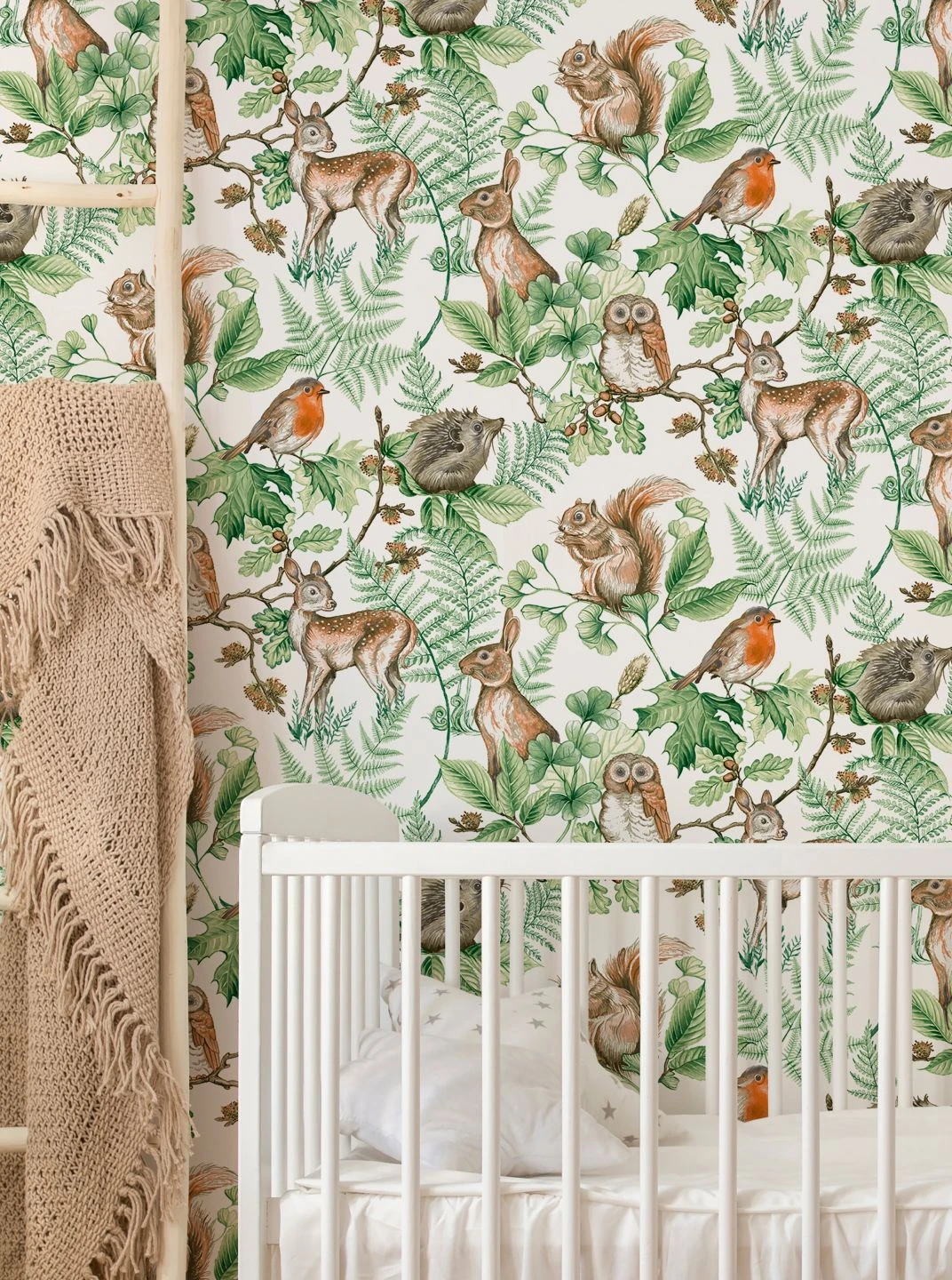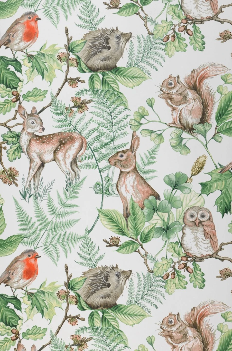 Igel und Eichhörnchen, Rehkitze und Hasen, Rotkehlchen und Waldkäuze – voller Details und Naturtreue sind die wunderschön gezeichneten Abbildungen der heimischen Tierwelt auf der Vliestapete „Nakuru“. Verschiedene Zweige mit Blättern und Früchten ergänzen die Zusammenstellung. Auf dem weißen Grund der Tapete kommen die zarten Farben ausdrucksvoll zur Geltung. Gerade für ein Kinderzimmer schaffen Sie eine zauberhafte Kulisse, in der es viel zu entdecken gibt.