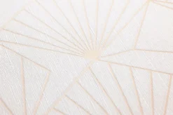 Der Mix von graphischen Elementen im Art Deco Stil wird auf dem cremeweißen Fond besonders deutlich. Die Schönheit der einzelnen Formen tritt zu Tage und lässt das Auge entspannen. Die feine Struktur schafft eine plastische Wirkung. Klassische wie auch moderne Styles setzt die hoch waschbeständige Vinyltapete wunschgemäß in Szene.