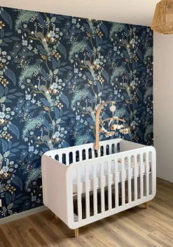 Üppige tropische Pflanzen, Blätter und Blüten, dazwischen Pfauen mit ihren majestätischen Schwanzfedern – die Vliestapete in verschiedenen Blautönen von Brillantblau bis Pastelltürkis erweckt die magische Atmosphäre einer Tropennacht zur blauen Stunde zum Leben. Tupfer aus Perlgold setzen Highlights, als würde das rötliche Licht des aufgehenden Mondes auf die Landschaft scheinen. Die Harmonie der Farben macht diese Tapete zu einem ästhetischen Genuss.