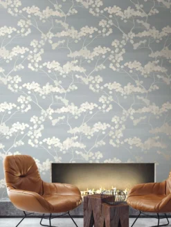 Feine Zweige mit irisierendem Glanz und im asiatischen Stil ergeben in ihrer besonderen Anordnung ein faszinierendes Musterspiel. Weite, Unendlichkeit und aufstrebende Freude verbreitet die glatte Papiertapete mit schimmerndem Untergrund. Gönnen Sie sich ein Stück von diesem floralen Tapetenglück.