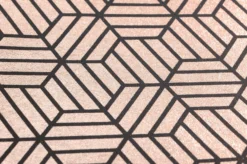 Glitterndes Rosenholz setzt die quer und längs verlaufenden Hexagone in ein kupferglänzendes Licht. Das schwarze, verspielte Geometriemuster liebt die Abwechslung und ist ein Eyecatcher für Gestaltungsideen, die Vintage und Moderne verbinden. Es bietet dem Auge Struktur und glanzvolle Blickpunkte.