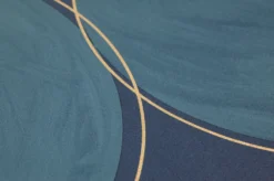 Große türkisblaue Kreise, wie von Hand mit Wasserfarben ausgemalt, deren Konturen von feinen goldfarbenen Linien umspielt werden, bilden auf dem dunkelblauen Grund von Vliestapete Rowan ein ebenso ruhiges wie ausdrucksvolles Muster. Die Blautöne kleiden ein Wohnzimmer ebenso vorteilhaft wie ein Schlafzimmer und lassen sich durch ihre unempfindliche Vinyloberfläche auch in Küche oder Bad problemlos einsetzen.