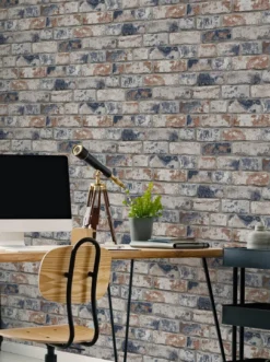Backsteinoptik in Perfektion bietet die Steinoptik-Tapete „Sabal“: Wie Farbschichten verschiedenen Alters wechseln sich Bereiche in Blaugrau, Grau, Grauweiß und Kupferbraun ab und geben der Papiertapete ihren unverwechselbaren Charakter. Die sich perfekt ergänzenden Farben bereichern Industrial Chic oder Shabby Chic mit dem rauen und gleichzeitig warmen Charme von Backsteinmauern historischer Industriegebäude.