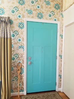 Cremeweiß sorgt für einen unwiderstehlichen Goldglanz und bringt die Spritzigkeit der Aquatöne auf den Punkt. Das stilisierte Blüten-Blätter-Arrangement beweist glamouröse Romantik in einer sehr modernen Form. Die waschbeständige Oberfläche erlaubt eine feuchte Reinigung.