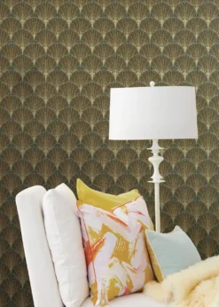 Ein feines Netz wie aus gesponnenem Gold liegt über dem warmen dunkelbraunen Grund dieser luxuriösen Vliestapete. Details wie die wasserblauen Einsprengsel im Hintergrund machen die Anmutung des abstrakten Musters im Art-Deco-Stil besonders lebendig. Setzen Sie diesem schwelgerischen Schmuck Ihrer Wände Möbel mit klaren Linien entgegen und fühlen Sie sich wohl im behaglichen, warm-goldenen Ambiente.