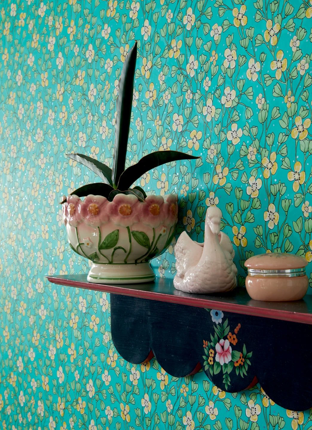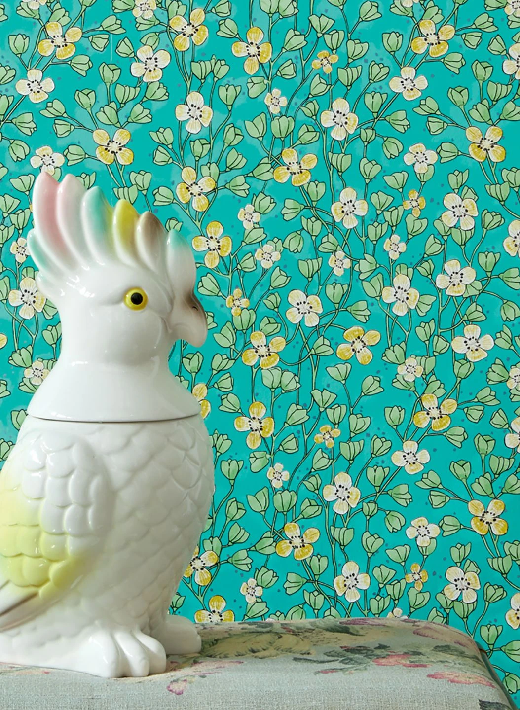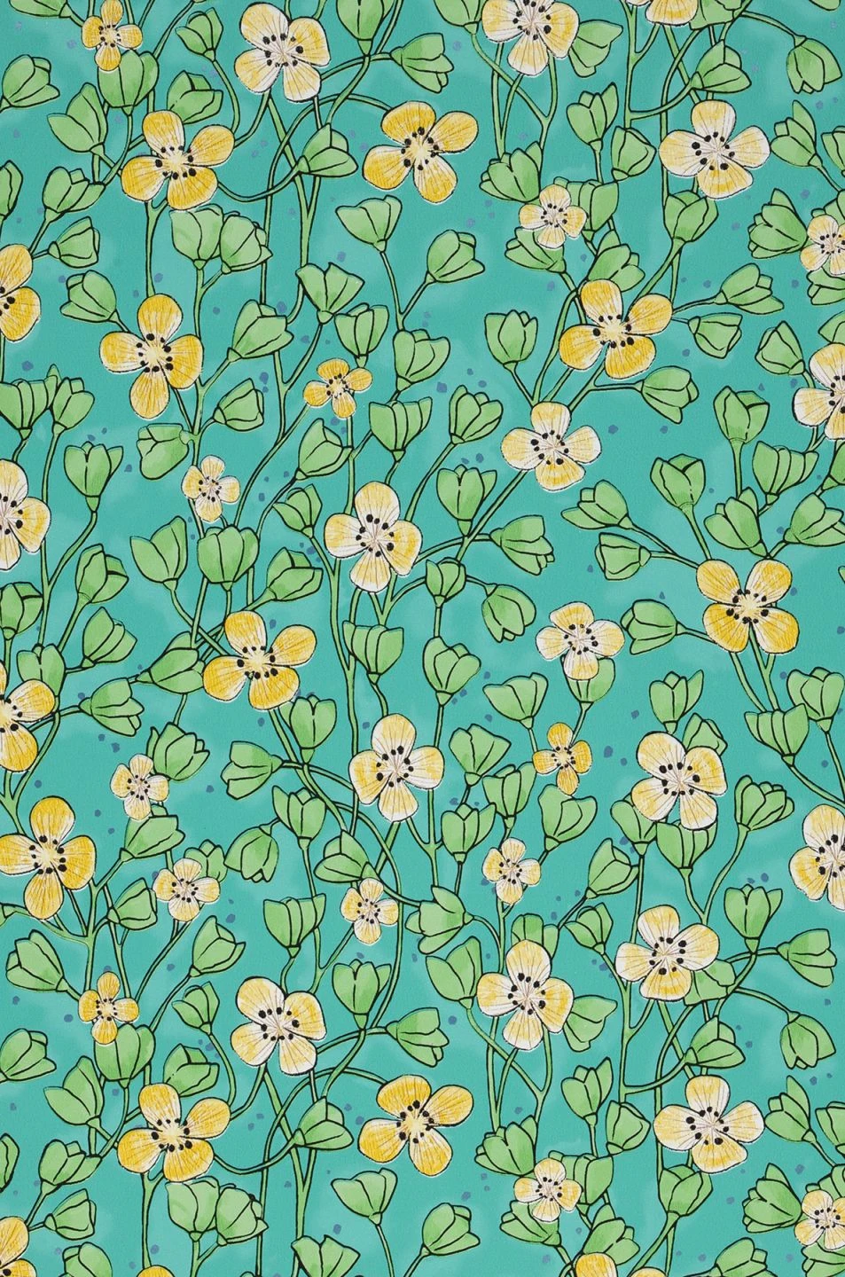 Eine frische, charismatische Kombination ist die Zusammenstellung von hellgrünen Blattranken und den Nuancen von Zitronengelb mit dem leuchtend türkis gefärbten Untergrund der Vliestapete. Die Farbverläufe von Gelb bis hin zu zartem Weiß machen die Blüten leicht und fast durchscheinend. Der kräftige Untergrund erhält interessante Details durch Farbsprenkel in leicht schimmerndem Graublau. Die vielseitige Tapete bringt Farbe in jeden Raum.