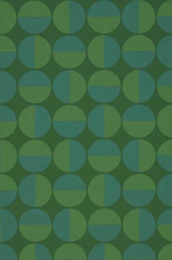 Das reizvolle Zusammenspiel von grünen und blaugrünen Halbkreisen auf laubgrünem Grund erzeugt eine ruhige Grundstimmung, während die unterschiedliche Anordnung der Farbflächen für Abwechslung sorgt. Das geometrische Muster mit Retro-Touch ist in jedem Raum Ihrer Wahl ein echter Hingucker. Mit formschönen Möbeln der 70er Jahre in Holztönen oder einer der Musterfarben schaffen Sie ein unverwechselbares, in sich stimmiges Ambiente.