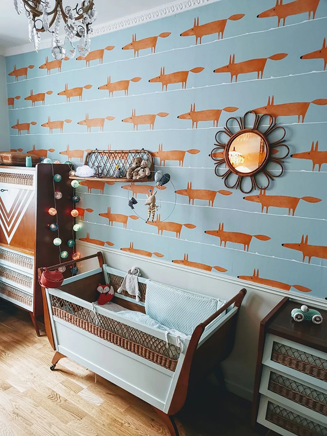 Hier stiehlt der Fuchs nicht die Gans, sondern höchstens die Aufmerksamkeit! Denn diese Designertapete zieht garantiert alle Blicke auf sich. Mit einem Augenzwinkern gezeichnete, kräftig orangefarbene Füchse auf blasstürkisfarbenem Grund beleben Ihre Wände mit ihrem ausdrucksvollen Charakter. Die Tiere, die aus einem Comic stammen könnten, sind eine tolle Kulisse für ein Kinderzimmer voller Lebensfreude oder einen kreativen Arbeitsraum.