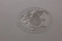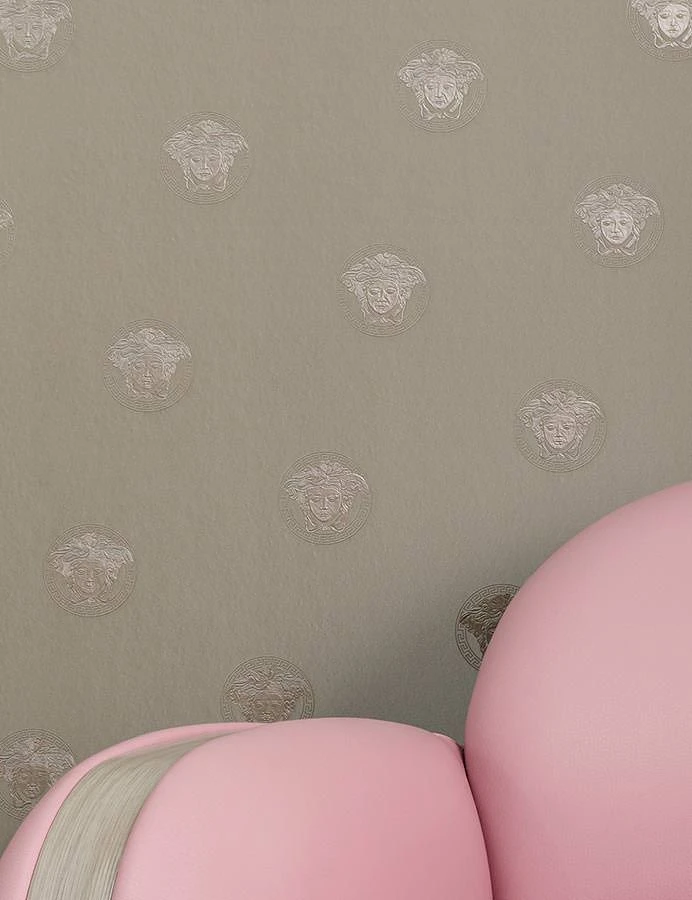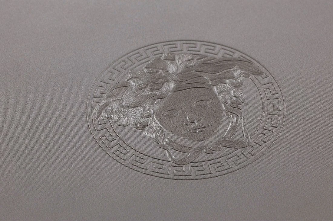 Der Medusenkopf – Das Markensymbol von Versace bildet auf der erlesenen Designer Tapete das prägende Muster. Das Ornament mit der mystischen wie tragischen Figur der griechischen Mythologie hebt sich als fühlbares Relief vom schimmernden Untergrund ab und eröffnet je nach Lichteinfall zwei Gesichter als Positiv oder Negativ. Fantastich geheimnisvoll und edel zugleich.