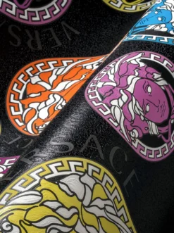 Antike Motive in fröhlichen bunten Farben wirken auf dem schwarzen Grund von Tapete Medusa besonders ausdrucksvoll. Das Design von Versace greift die Sage der Medusa auf, die jeden, der sie ansieht, in Stein verwandelt, und verkehrt sie in ihr Gegenteil – denn die lebensfrohen Farben und die lockere Verteilung der reliefartig fühlbaren Musterelemente verbreiten Lebenskraft, gute Laune und einen Hauch von Extravaganz in Ihren vier Wänden.
