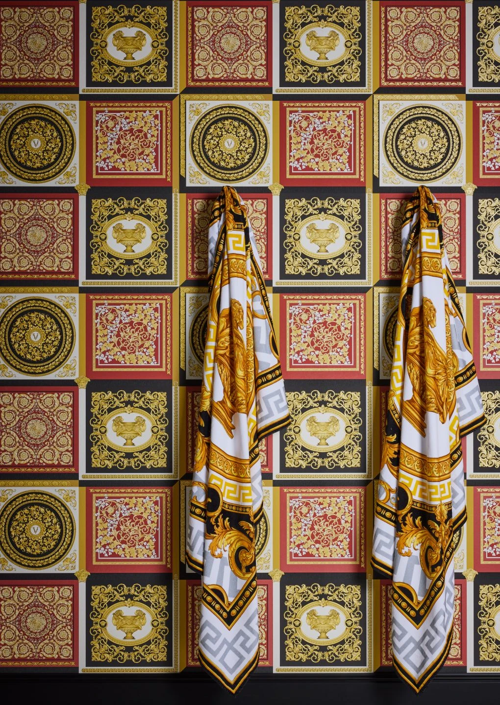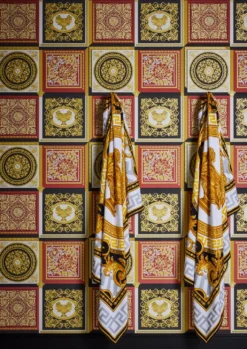 Außergewöhnlich und opulent – das Design aus dem Hause Versace spielt mit barocken Ornamenten und dem Gestaltungselement quadratischer Kassetten und kreiert eine Tapete, die ebenso luxuriös wie extravagant daherkommt. Klassisches Rot, Schwarz und Weiß, fein verschnörkelte stilisierte Ranken und Blätter bringen eine verschwenderische Fülle verschiedener Muster. In der Vinyloberfläche sind die Ornamente als feine Struktur sogar fühlbar.